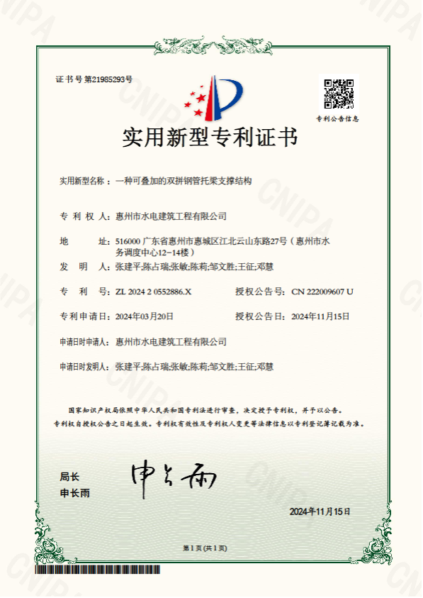 惠州市水電建筑工程有限公司成立于一九六四年四月,隸屬惠州市水務集團有限公司,是一家國有綜合性施工企業,主營水利水電工程、房屋建筑、市政工程等施工業務。公司擁有水利水電工程施工總承包一級、建筑工程施工總承包一級、市政公用工程施工總承包一級、公路工程施工總承包三級,公路路基、路面及建筑裝修裝飾專業承包二級,環保工程、機電安裝、河湖整治、輸變電工程專業承包三級等經營資質……